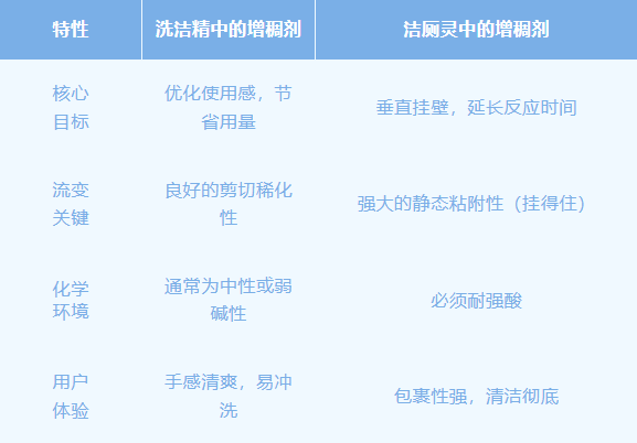 例如,洁厕灵中的增稠剂,在强酸体系中,这种增稠剂发挥着至关重要的作用。不仅能够提升清洁产品的质地和稳定性,还能增强清洁效果。
