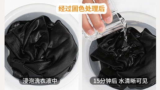 3、对大红、宝蓝、深黑色布料有优异的固色效果,变色小,不影响手感。