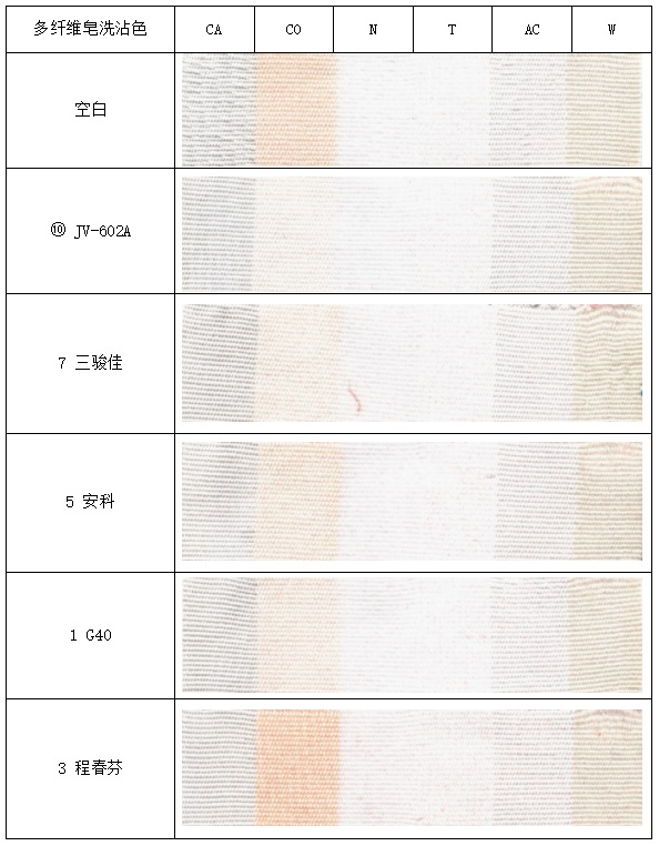 2、经无醛固色剂JV-602C整理过的织物,能明显提高各项色牢度指标。